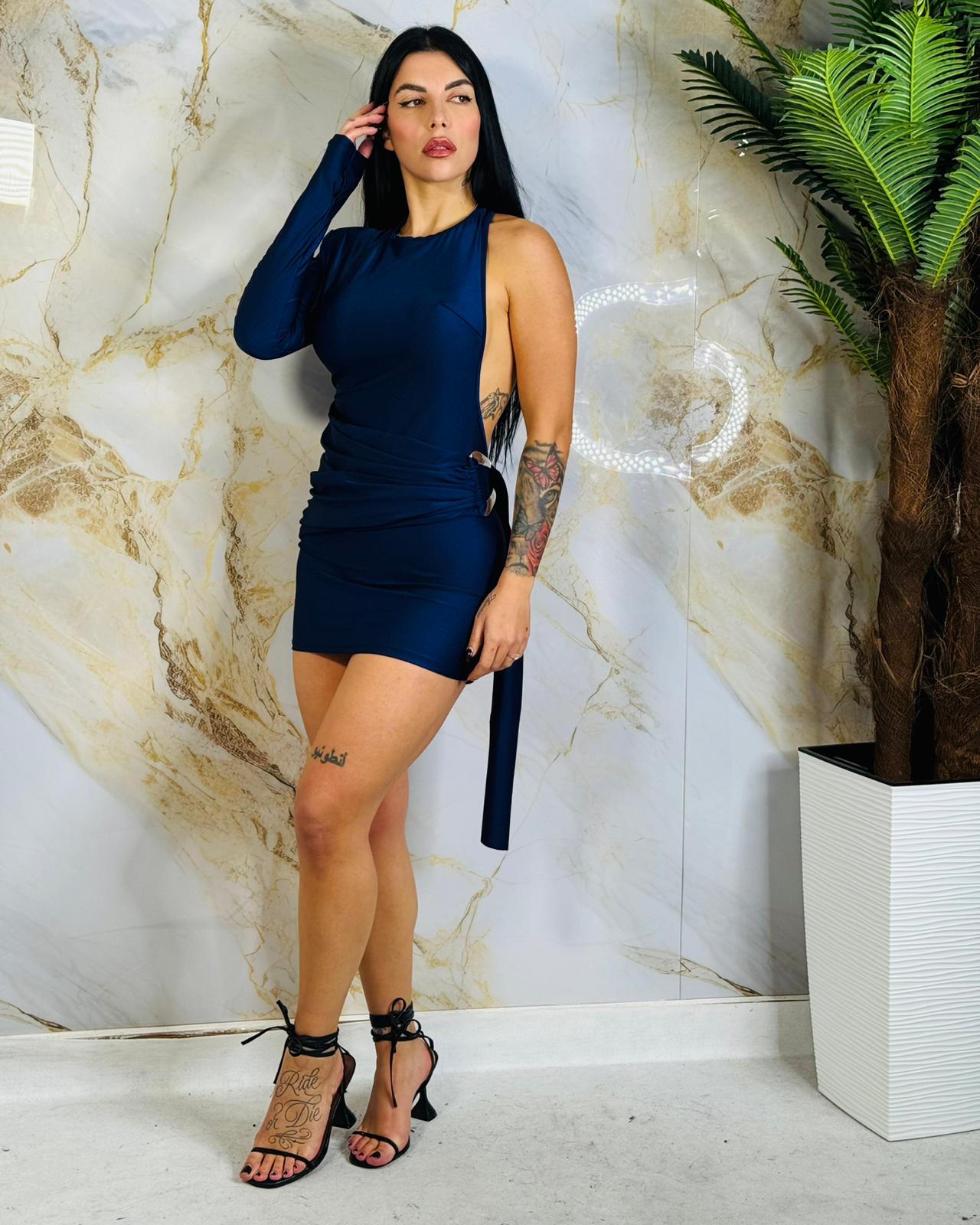 Mini dress monospalla in lycra top quality, veste fino ad una 44, disponibile in blu, marrone e nero.