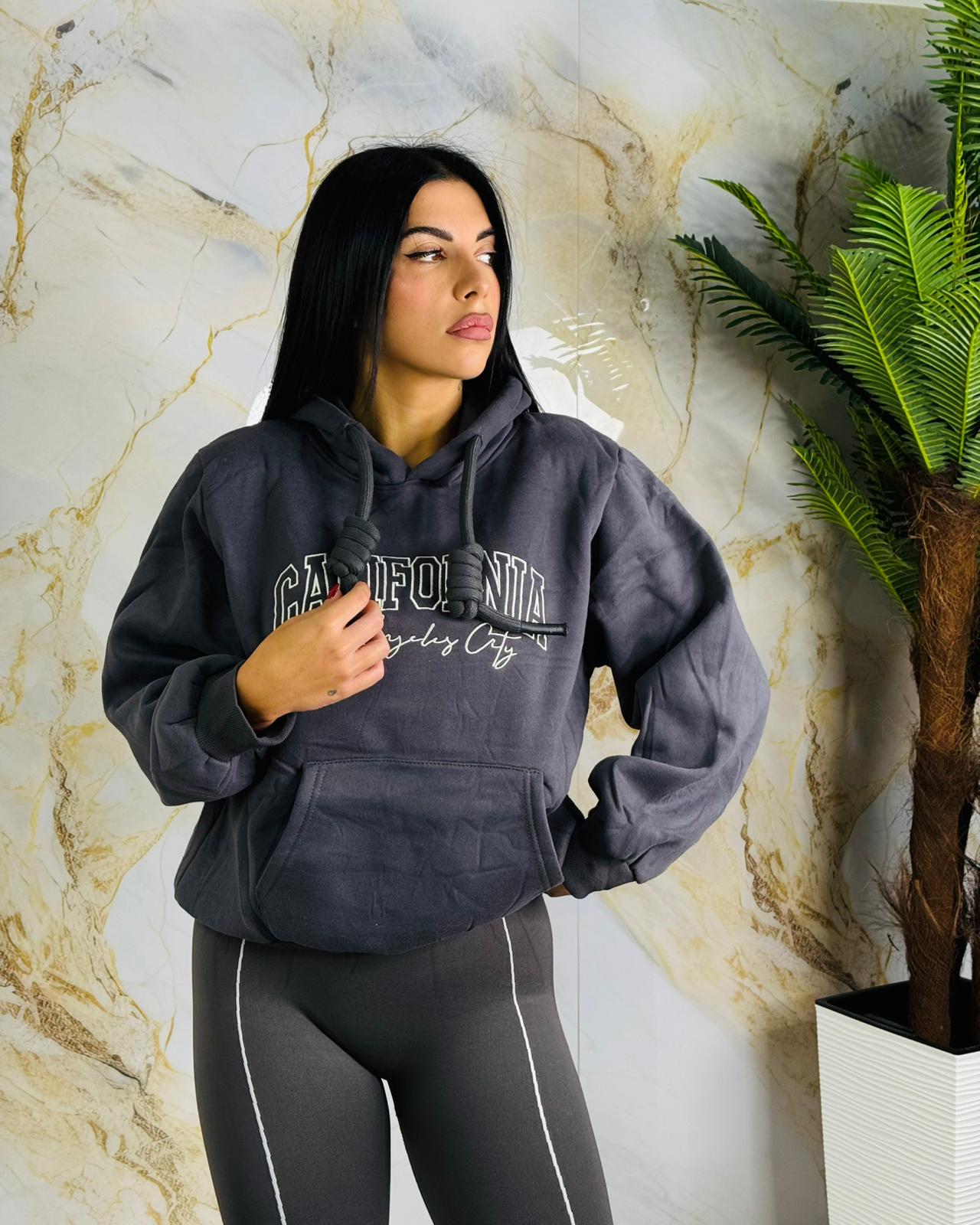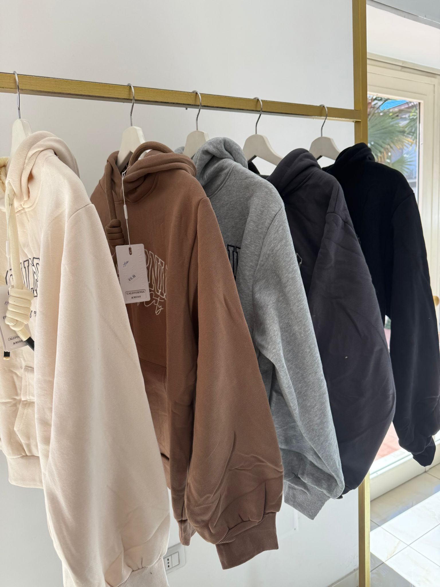 Felpa oversize felpata, veste fino ad una 44, disponibile in panna, marrone, grigio, grigio scuro e nero.