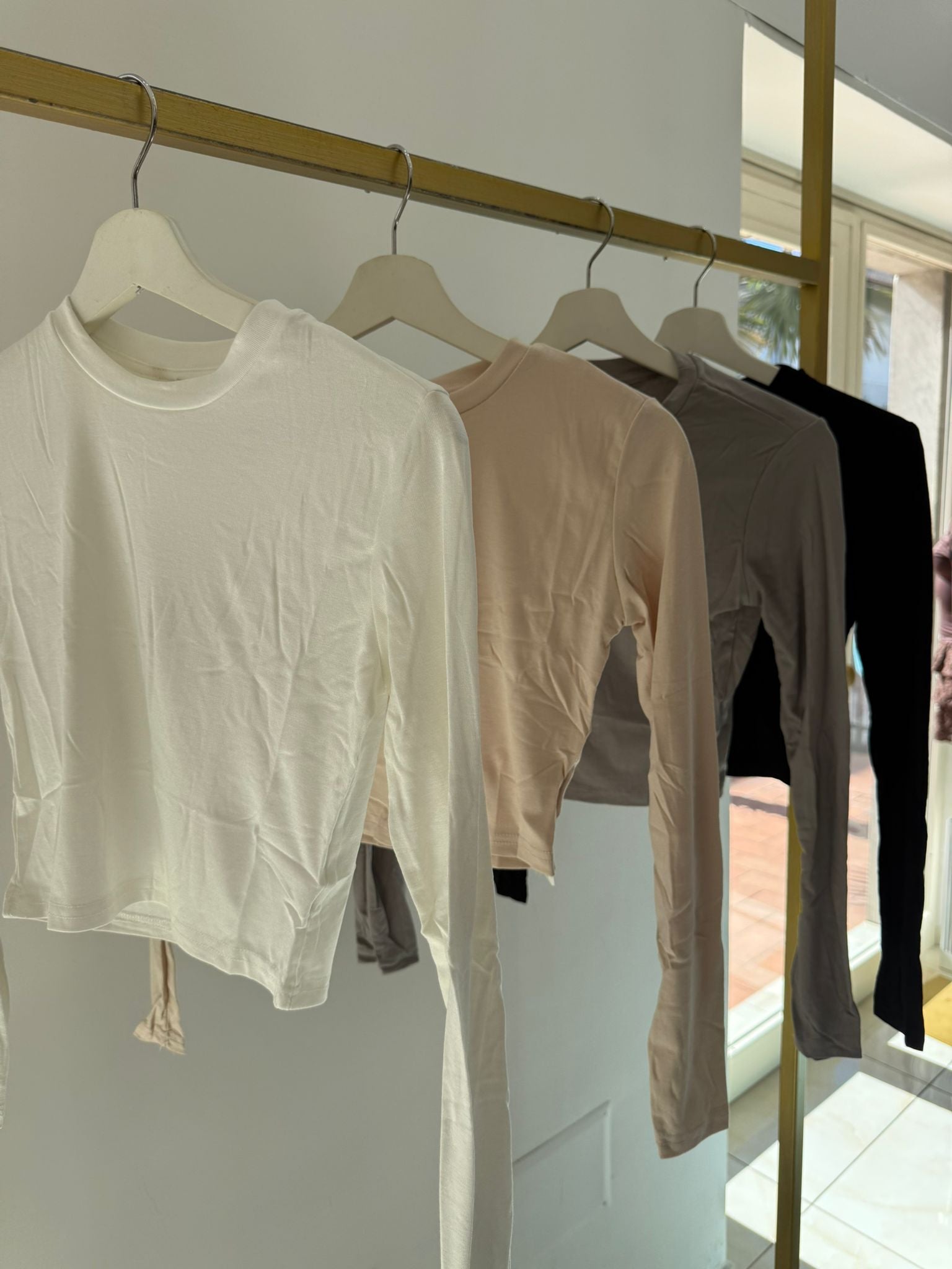 Maglia crop in cotone top quality, veste fino ad una 44, disponibile in bianco, beige, grigio e nero.