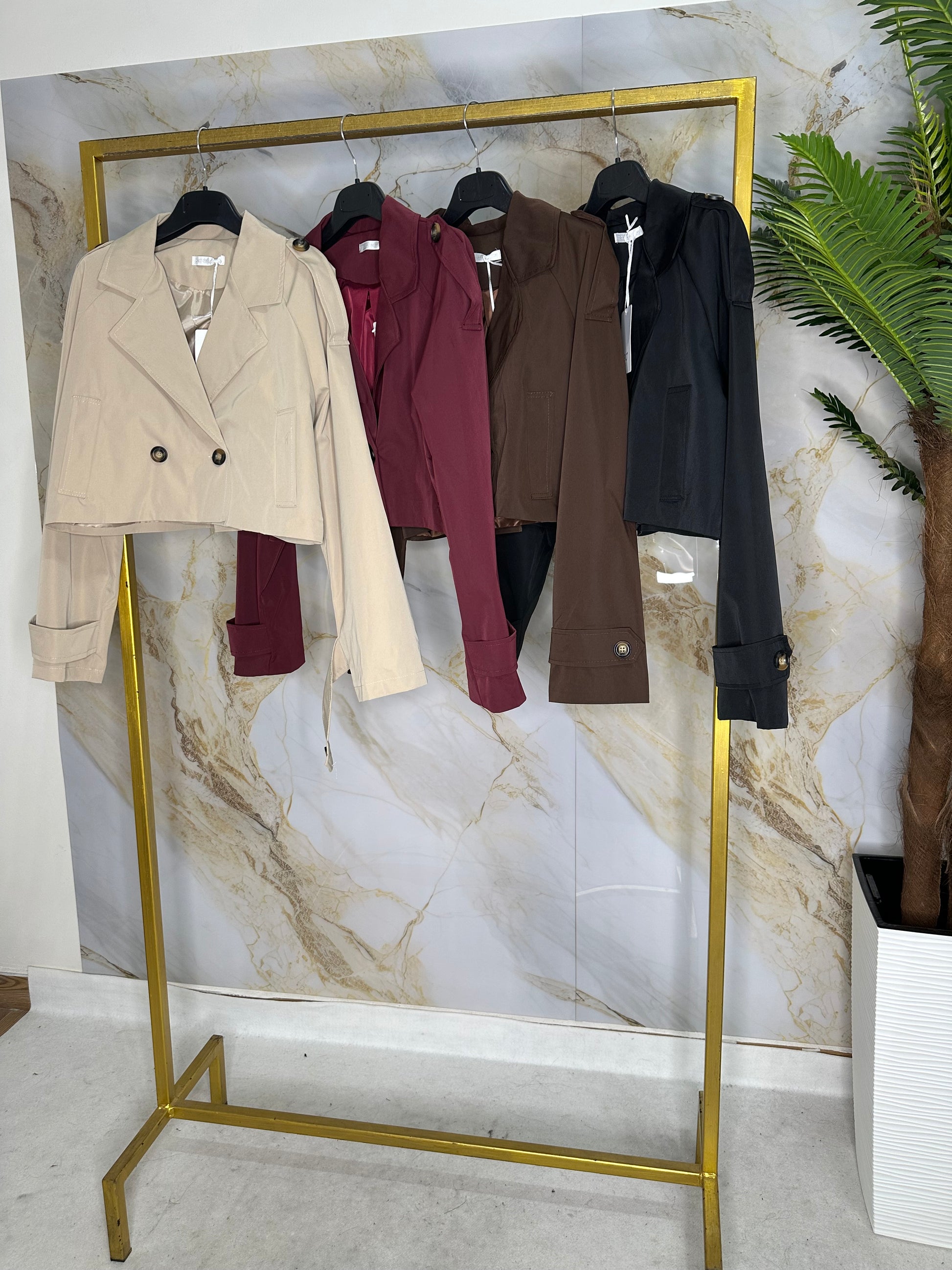 Trench in cotone, veste fino ad una 44, disponibile in beige, bordeaux, marrone e nero.